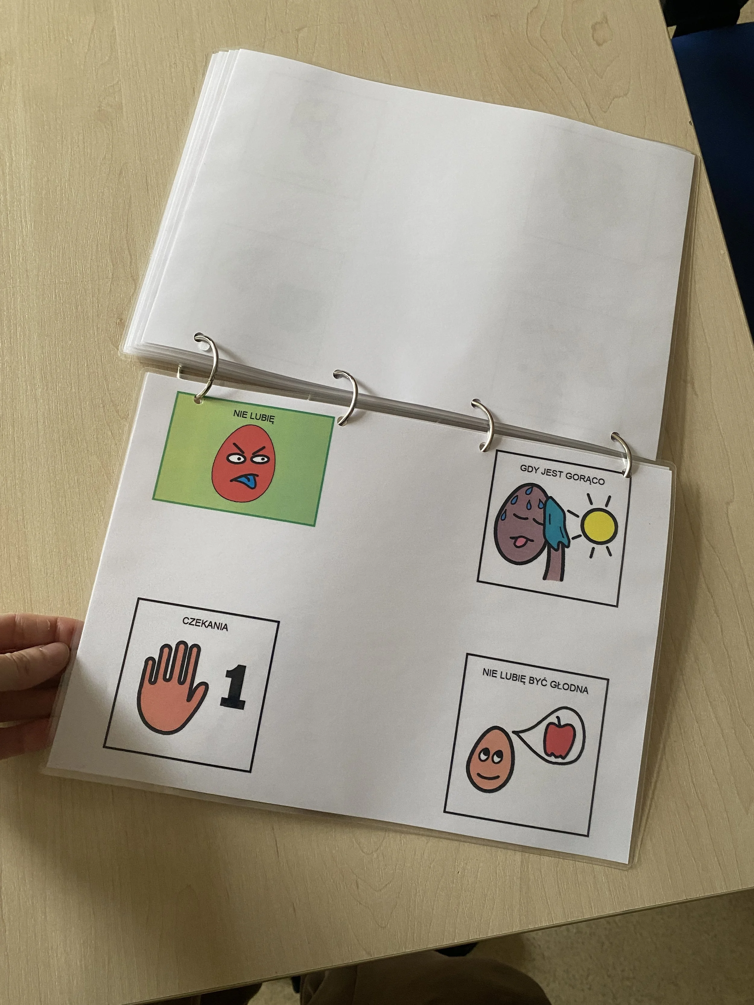 Відкриттям було те, що ламінувати картки, сторінки комунікативних книг та комунікативні рамки краще матовою плівкою, бо бліки на глянцевій можуть відволікати чи не давати добре побачити зображення.